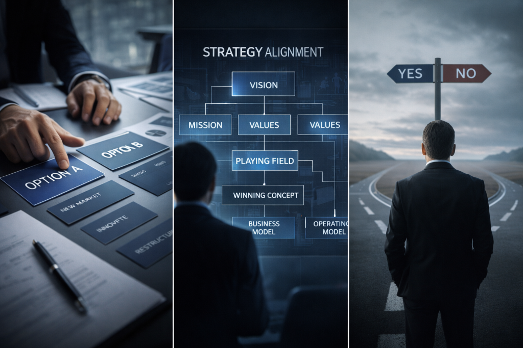 Bagi Direktur Strategi atau pimpinan perusahaan, artikel ini memberikan peta yang jelas tentang apa saja yang harus dihasilkan sebelum strategi dijalankan. Artikel ke-3 akan melanjutkan perjalanan ini dengan membahas bagaimana arsitektur pilihan tersebut diterjemahkan menjadi sistem eksekusi, KPI, PDCA cycle, dan pembelajaran strategis berkelanjutan, sehingga strategi tidak hanya dirancang untuk menang, tetapi juga mampu bertahan dan terus belajar.