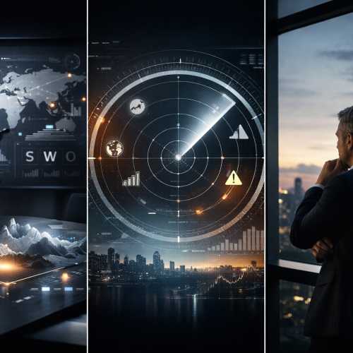 Artikel pertama Reading the Terrain, Environmental Scanning sebagai Strategic Radar Organisasi dalam seri ini menempatkan environmental scanning sebagai strategic radar—alat organisasi untuk membaca perubahan eksternal dan internal secara jernih. Melalui pemetaan tren industri, dinamika kompetisi, perubahan teknologi, serta kapabilitas internal, organisasi memperoleh pemahaman medan yang lebih realistis. Namun pemahaman tersebut belumlah strategi.