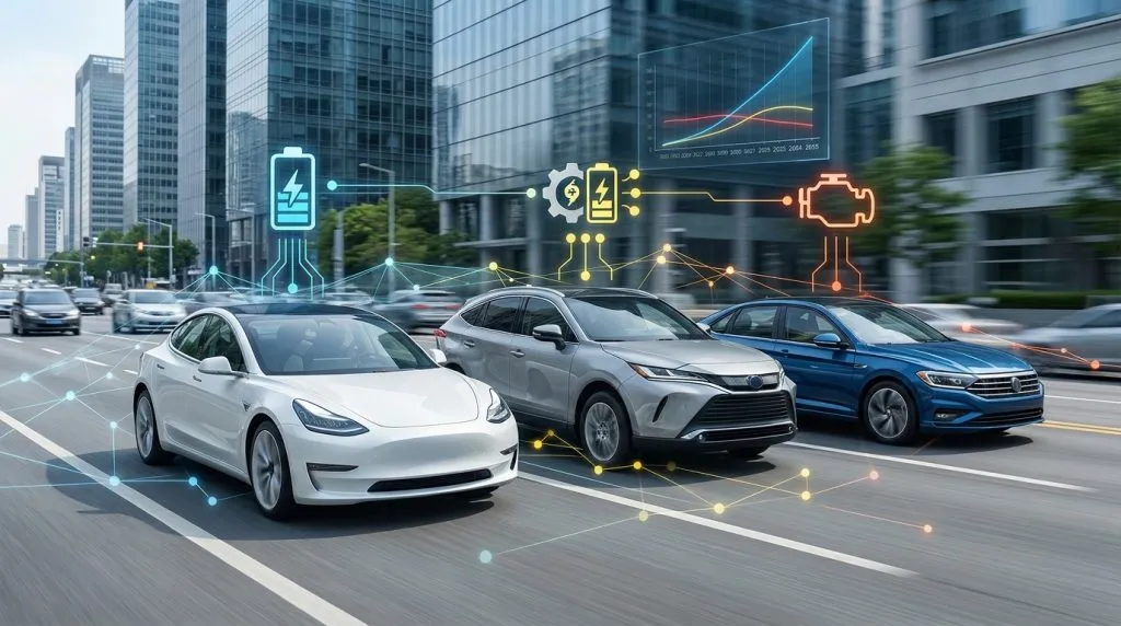 Dalam satu dekade terakhir (2016–2025), industri otomotif global mengalami perubahan yang cepat, tetapi tidak berjalan dalam satu arah yang sederhana. Penjualan kendaraan listrik atau EV (Electric Vehicle) telah melampaui 18 juta unit pada 2025 dan menyumbang lebih dari 20% pasar global. Sementara itu, Hybrid (Hybrid Electric Vehicle) tumbuh stabil hingga lebih dari 5 juta unit, dan mesin biasa atau ICE (Internal Combustion Engine) masih mendominasi dengan hampir 70% pangsa pasar.